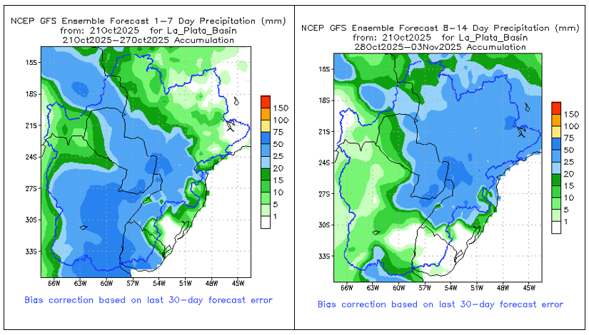 El pronóstico Hidrometeorológico del Centro Climático de referencia indica una tendencia semanal de poca significancia hidrológica en la cuenca de interés para la CHY con dispersión geográfica según sea la fuente consultada. (Ver gráfico Nro. 1).