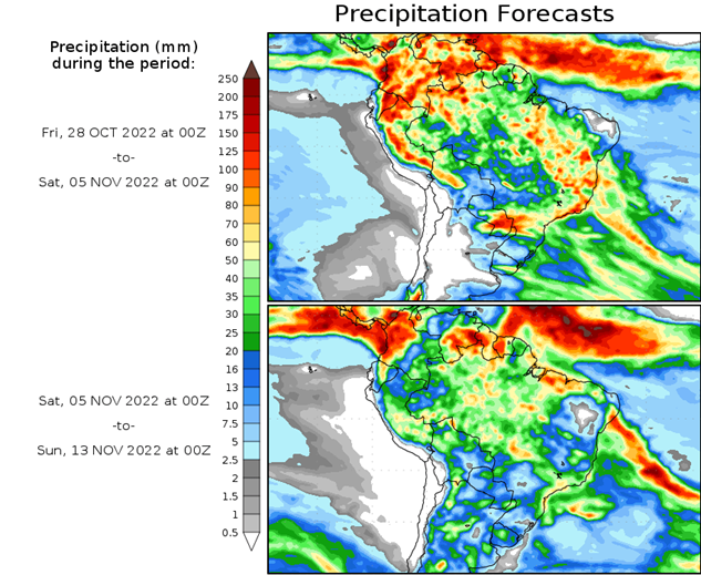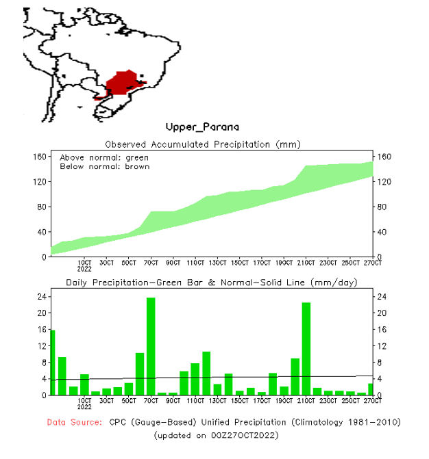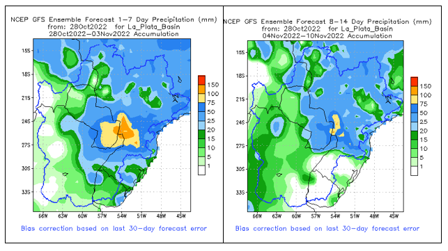 El pronóstico Hidrometeorológico del Centro Climático de referencia indica una tendencia semanal de significancia hidrológica en la cuenca de interés para la CHY con dispersión geográfica según sea la fuente consultada. (Ver gráfico Nro. 1).