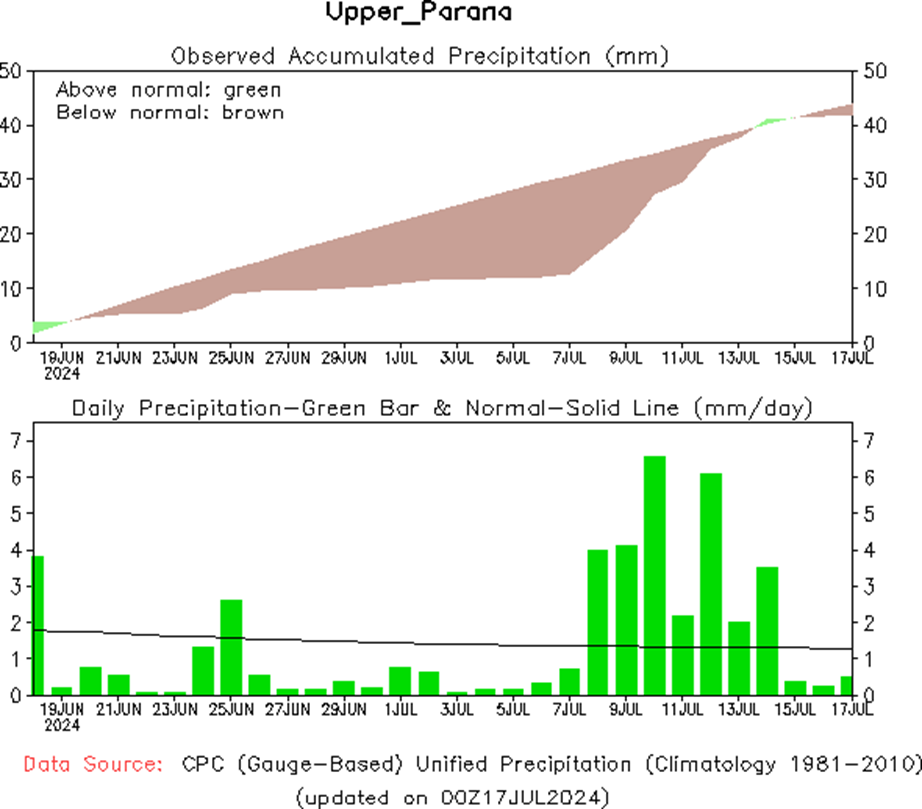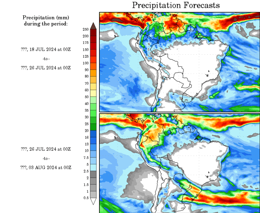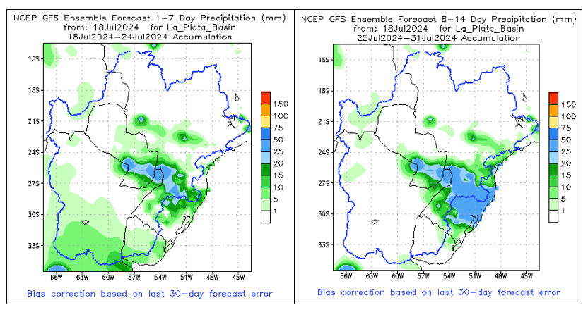 El pronóstico Hidrometeorológico del Centro Climático de referencia indica una tendencia semanal de poca significancia hidrológica en la cuenca de interés para la CHY con dispersión geográfica según sea la fuente consultada. (Ver gráfico Nro. 1).