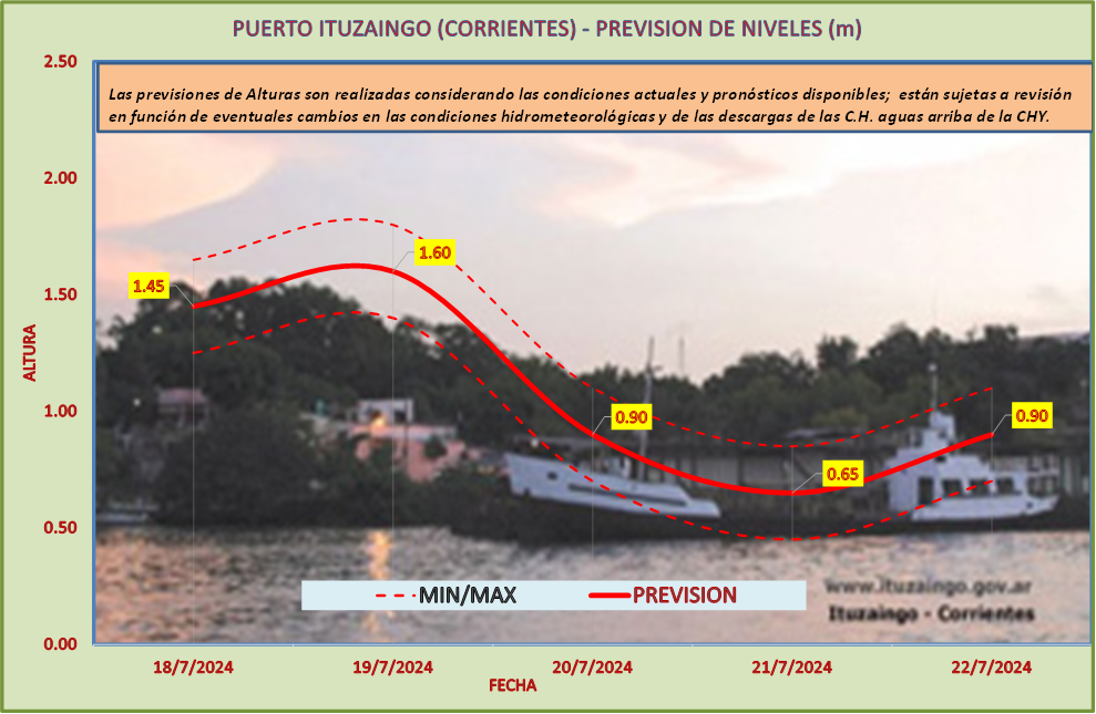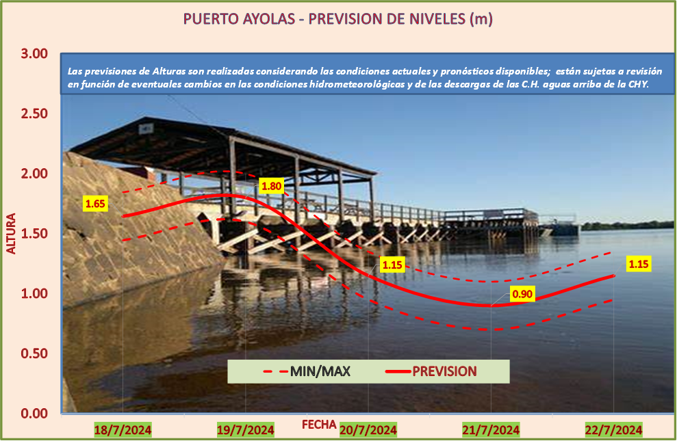 Las previsiones de Alturas son realizadas considerando las condiciones actuales y pronósticos disponibles y están sujetas a revisión en función de eventuales cambios en las condiciones hidrometeorológicas y de las descargas de las C.H. aguas arriba de la CHY.