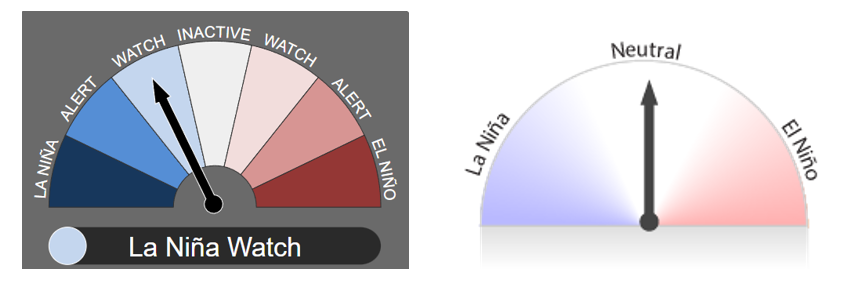 La Perspectiva ENSO se encuentra actualmente en ‘Vigilancia de La Niña’, lo que significa que hay algunas señales de que La Niña podría formarse en el Océano Pacífico más adelante en 2024. Los indicadores atmosféricos y oceánicos se encuentran actualmente dentro de los umbrales neutrales de ENSO.