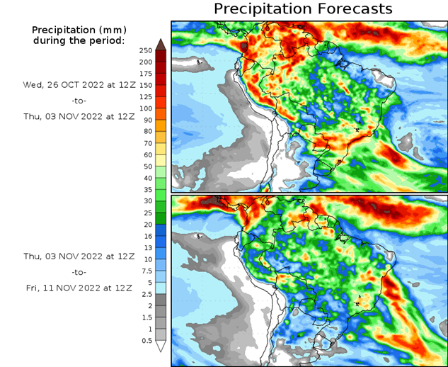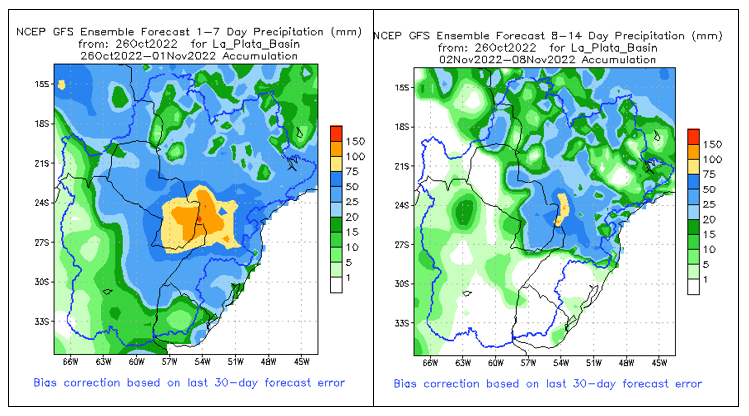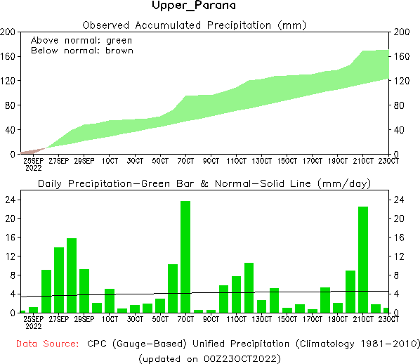 El pronóstico Hidrometeorológico del Centro Climático de referencia indica una tendencia semanal de significancia hidrológica en la cuenca de interés para la CHY con dispersión geográfica según sea la fuente consultada. (Ver gráfico Nro. 1).