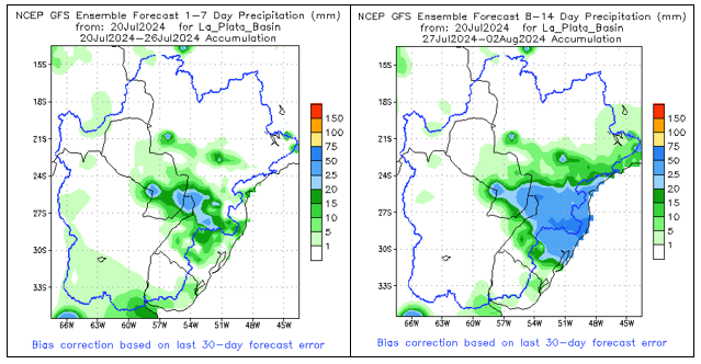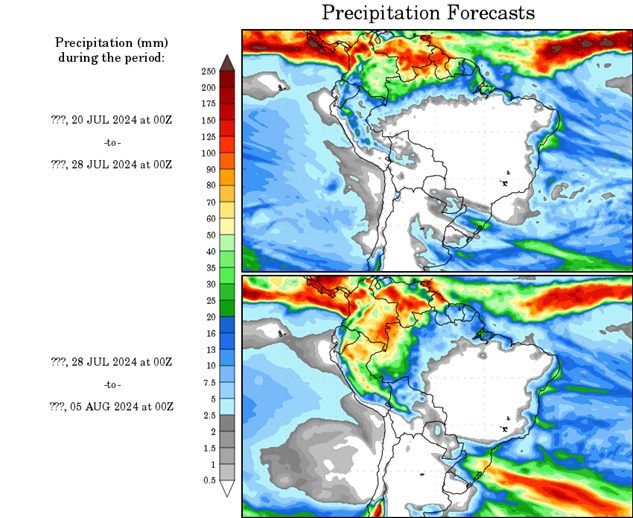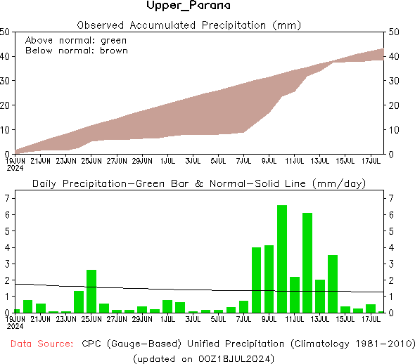 El pronóstico Hidrometeorológico del Centro Climático de referencia indica una tendencia semanal de poca significancia hidrológica en la cuenca de interés para la CHY con dispersión geográfica según sea la fuente consultada. (Ver gráfico Nro. 1).