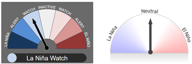 La Perspectiva ENSO se encuentra actualmente en ‘Vigilancia de La Niña’, lo que significa que hay algunas señales de que La Niña podría formarse en el Océano Pacífico más adelante en 2024. Los indicadores atmosféricos y oceánicos se encuentran actualmente dentro de los umbrales neutrales de ENSO.