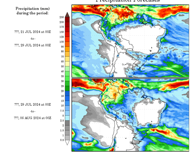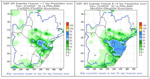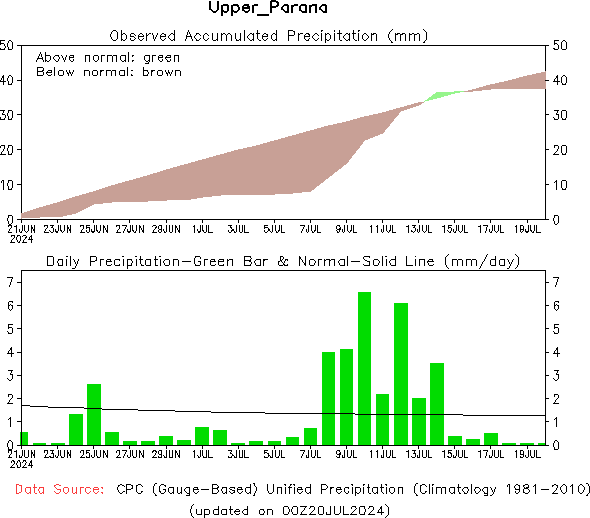El pronóstico Hidrometeorológico del Centro Climático de referencia indica una tendencia semanal de poca significancia hidrológica en la cuenca de interés para la CHY con dispersión geográfica según sea la fuente consultada. (Ver gráfico Nro. 1).