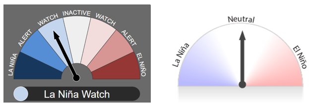La Perspectiva ENSO se encuentra actualmente en ‘Vigilancia de La Niña’, lo que significa que hay algunas señales de que La Niña podría formarse en el Océano Pacífico más adelante en 2024. Los indicadores atmosféricos y oceánicos se encuentran actualmente dentro de los umbrales neutrales de ENSO.