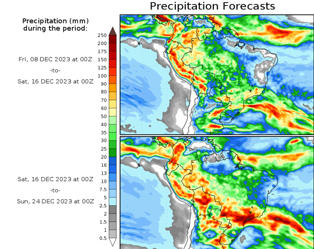 El pronóstico Hidrometeorológico del Centro Climático de referencia indica una tendencia semanal de significancia hidrológica en la cuenca de interés para la CHY con dispersión geográfica según sea la fuente consultada. (Ver gráfico Nro. 1).