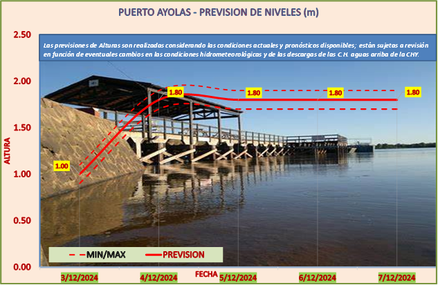 Las previsiones de Alturas son realizadas considerando las condiciones actuales y pronósticos disponibles y están sujetas a revisión en función de eventuales cambios en las condiciones hidrometeorológicas y de las descargas de las C.H. aguas arriba de la CHY.