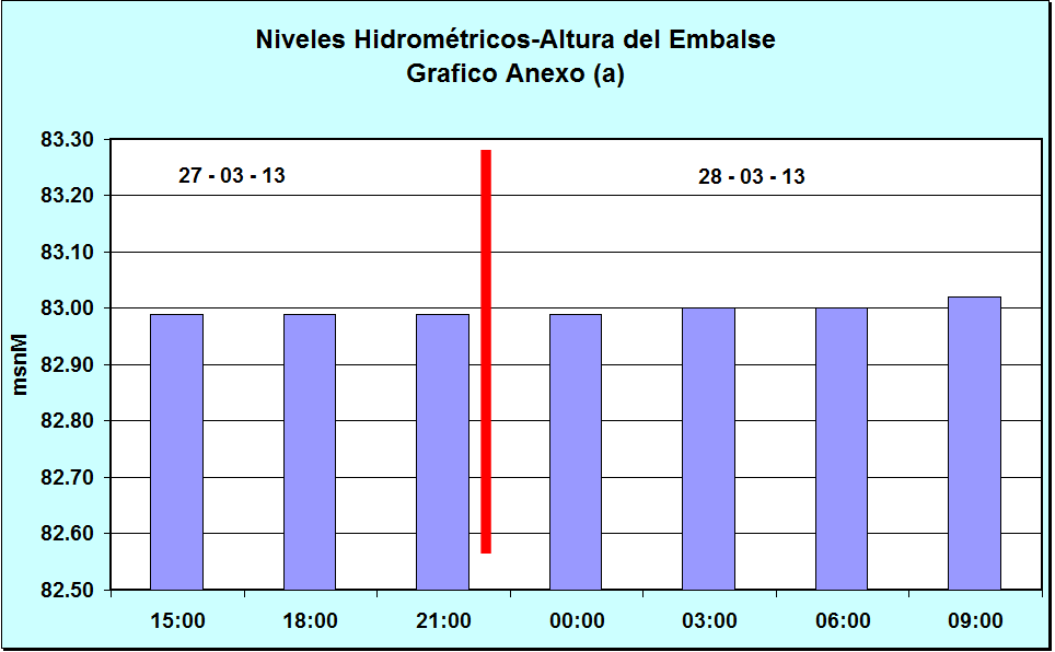 Nivel Día 27-03-13 03:00 hs, 82.96 msnM Nivel Día 28-03-13 03:00 hs, 83.00 msnM