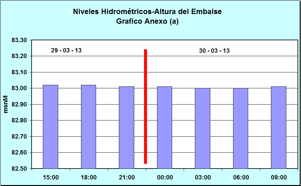 Nivel Día 29-03-13 03:00 hs, 83.05 msnM Nivel Día 30-03-13 03:00 hs, 83.00 msnM