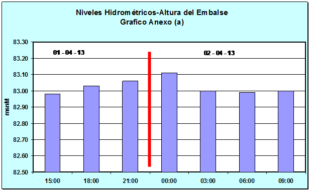 Nivel Día 01-04-13 03:00 hs, 82.96 msnM Nivel Día 02-04-13 03:00 hs, 83.00 msnM