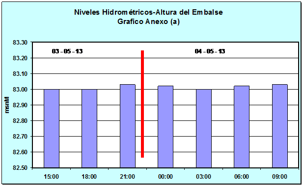 Nivel Día 03-05-13 03:00 hs, 82.99 msnM Nivel Día 04-05-13 03:00 hs, 83.00 msnM