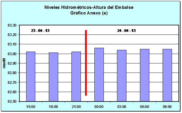 Nivel Día 23-04-13 03:00 hs, 83.01 msnM Nivel Día 24-04-13 03:00 hs, 83.04 msnM
