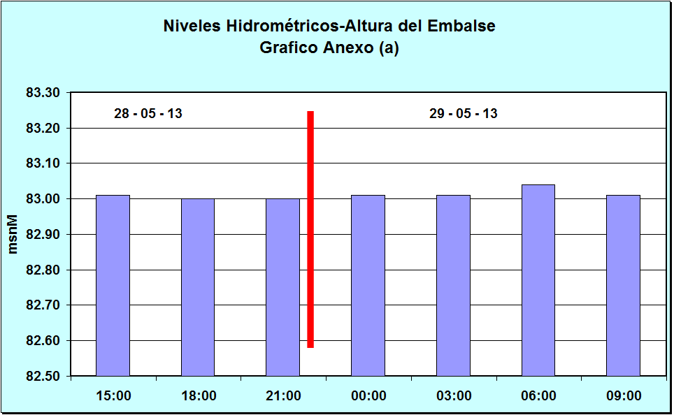 Nivel Día 28-05-13 03:00 hs, 83.01 msnM Nivel Día 29-05-13 03:00 hs, 83.01 msnM
