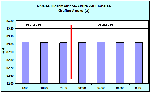 Nivel Día 21-04-13 03:00 hs, 83.03 msnM Nivel Día 22-04-13 03:00 hs, 83.03 msnM