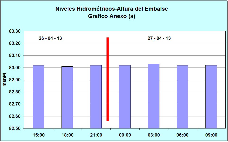 Nivel Día 26-04-13 03:00 hs, 83.03 msnM Nivel Día 27-04-13 03:00 hs, 83.03 msnM