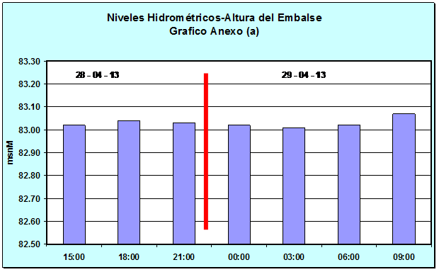 Nivel Día 28-04-13 03:00 hs, 83.03 msnM Nivel Día 29-04-13 03:00 hs, 83.03 msnM