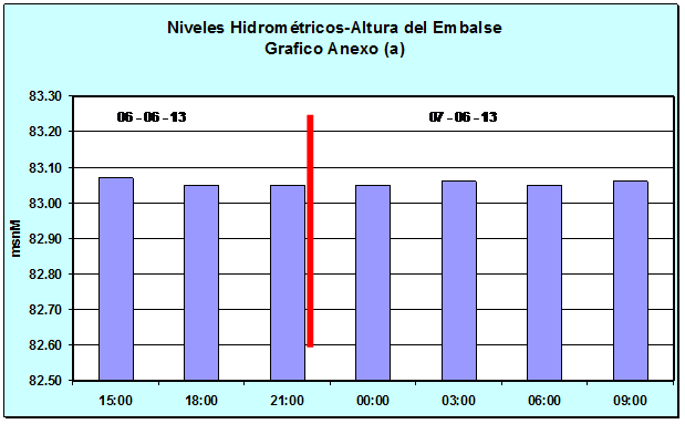 Nivel Día 06-06-13 03:00 hs, 83.05 msnM Nivel Día 07-06-13 03:00 hs, 83.03 msnM