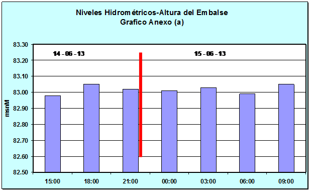 Nivel Día 14-06-13 06:00 hs, 83.04 msnM Nivel Día 15-06-13 06:00 hs, 83.03 msnM