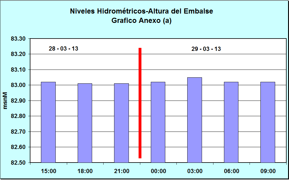 Nivel Día 28-03-13 03:00 hs, 83.00 msnM Nivel Día 29-03-13 03:00 hs, 83.05 msnM