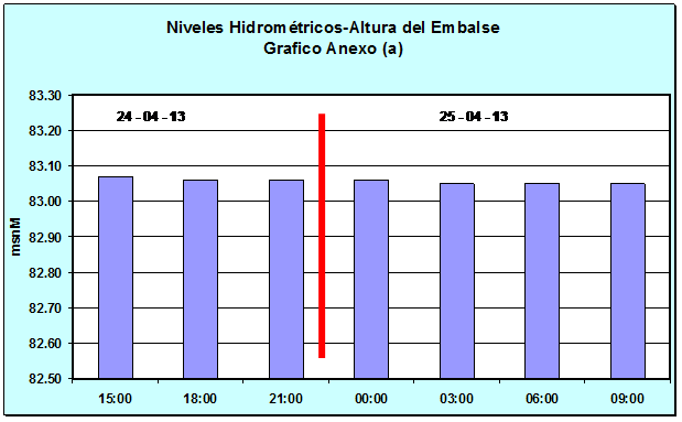 Nivel Día 24-04-13 03:00 hs, 83.04 msnM Nivel Día 25-04-13 03:00 hs, 83.05 msnM