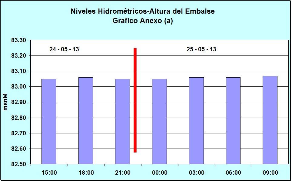 Nivel Día 24-05-13 03:00 hs, 83.06 msnM Nivel Día 25-05-13 03:00 hs, 83.06 msnM