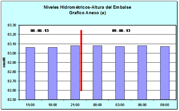 Nivel Día 08-06-13 03:00 hs, 83.06 msnM Nivel Día 09-06-13 03:00 hs, 83.07 msnM