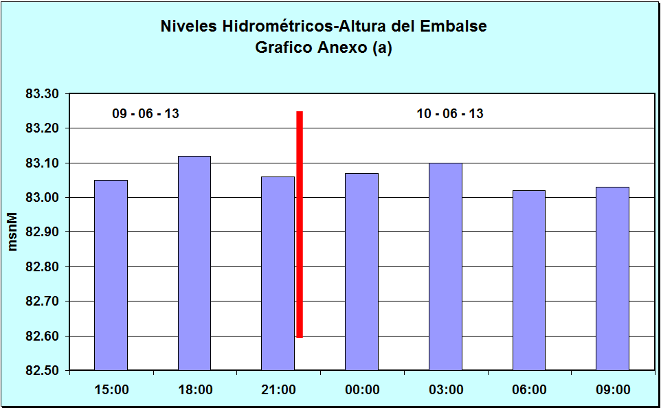 Nivel Día 09-06-13 03:00 hs, 83.07 msnM Nivel Día 10-06-13 03:00 hs, 83.10 msnM