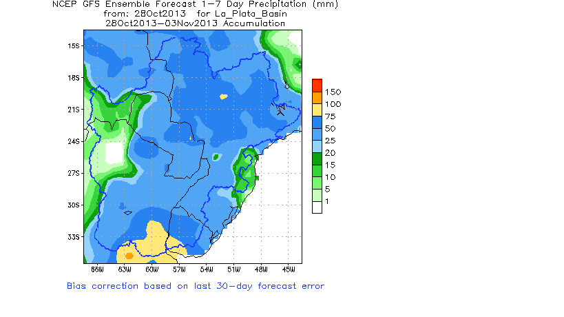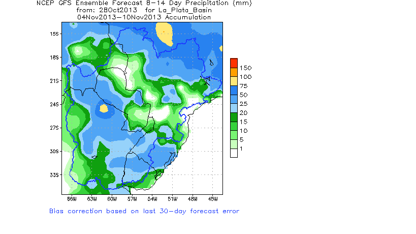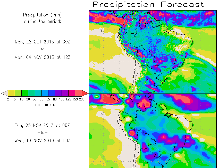 El pronóstico Hidrometeorológico del Centro Climático de referencia indica una tendencia semanal de poca significancia hidrológica en la cuenca de interés para la CHY con dispersión geográfica según sea la fuente consultada. (Ver grafico Nro. 1).