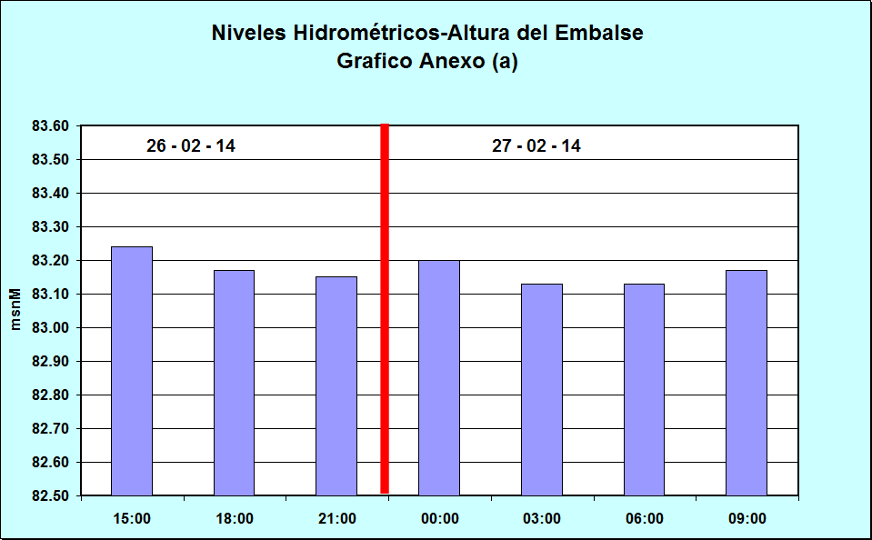 Nivel de Ayer (06:00 hs)= 83.22 msnM Nivel de Hoy (06:00 hs)= 83.13 msnM
