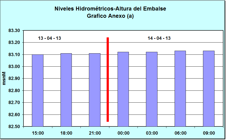 Nivel Día 13-04-13 03:00 hs, 83.08 msnM Nivel Día 14-04-13 03:00 hs, 83.12 msnM
