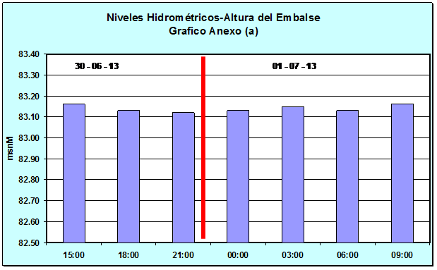 Nivel Día 30-06-13 06:00 hs, 83.23 msnM Nivel Día 01-07-13 06:00 hs, 83.13 msnM