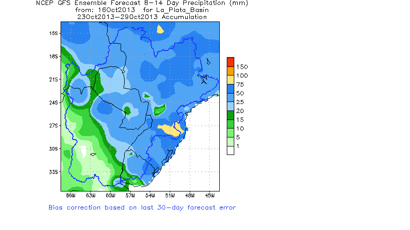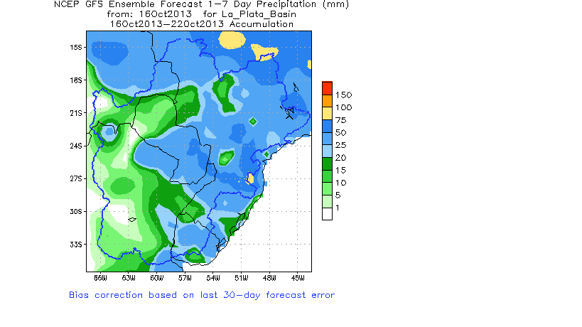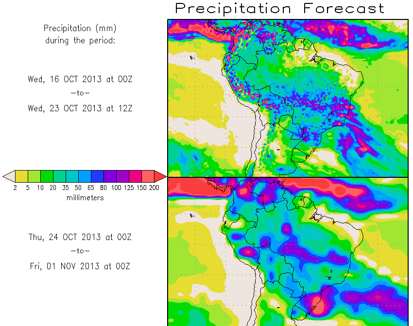 El pronóstico Hidrometeorológico del Centro Climático de referencia indica una tendencia semanal de leve significancia hidrológica en la cuenca de interés para la CHY con dispersión geográfica según sea la fuente consultada. (Ver grafico Nro. 1).