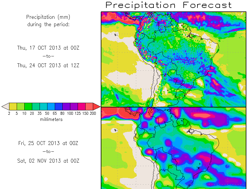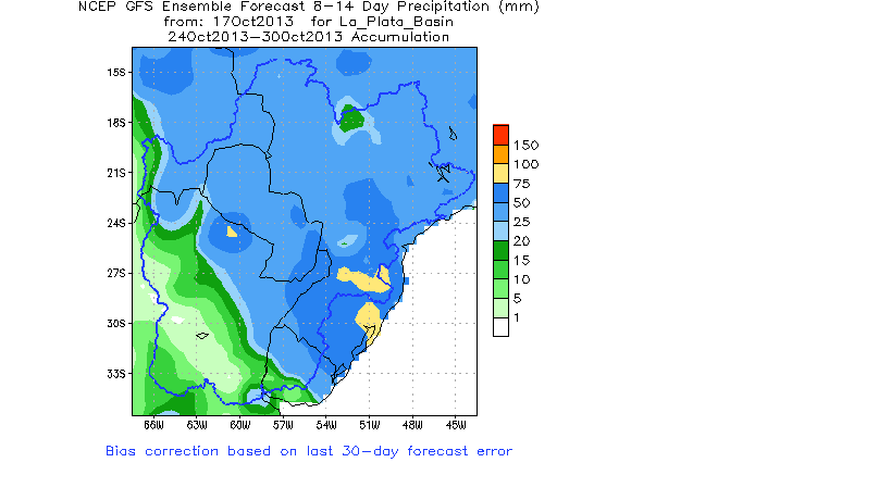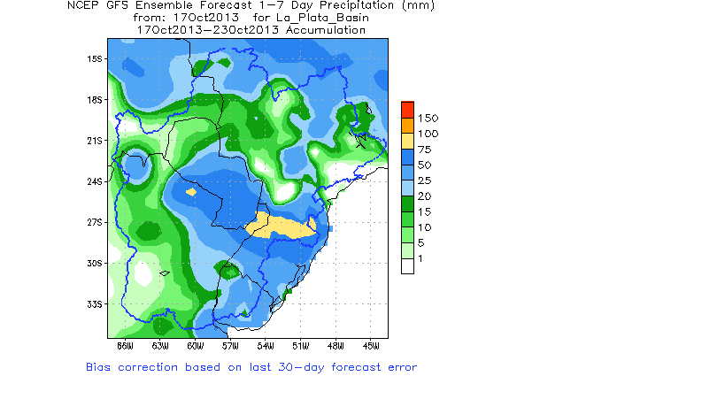 El pronóstico Hidrometeorológico del Centro Climático de referencia indica una tendencia semanal de leve significancia hidrológica en la cuenca de interés para la CHY con dispersión geográfica según sea la fuente consultada. (Ver grafico Nro. 1).