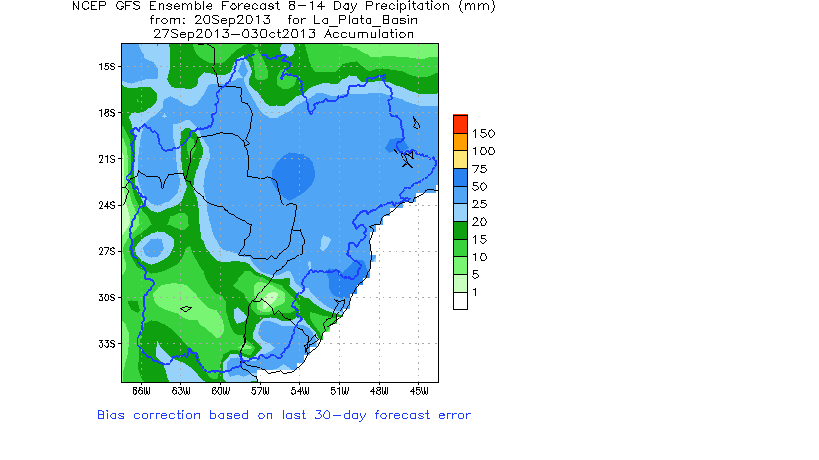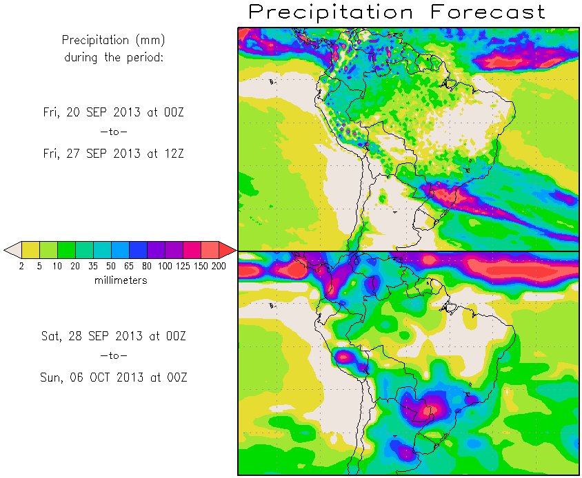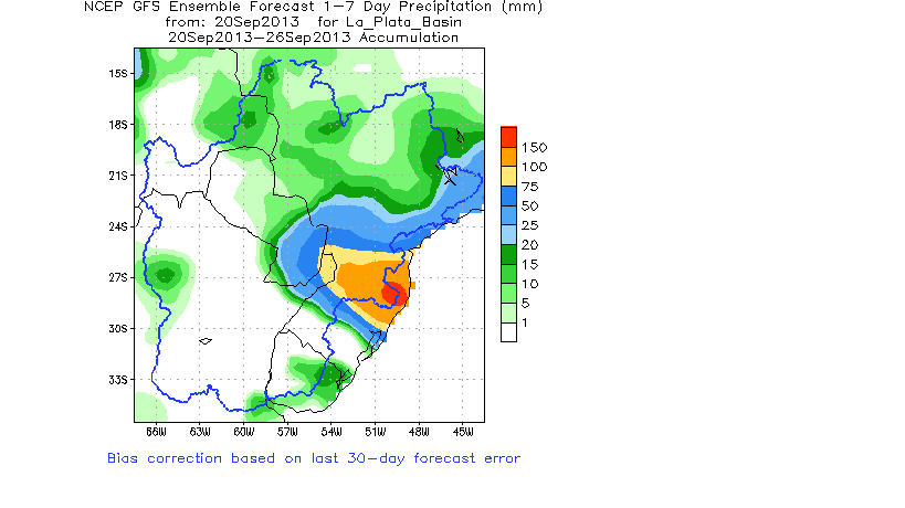 El pronóstico Hidrometeorológico del Centro Climático de referencia indica una tendencia semanal de significancia hidrológica en la cuenca de interés para la CHY con dispersión geográfica según sea la fuente consultada. (Ver grafico Nro. 1).