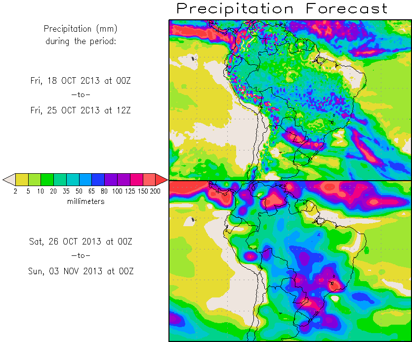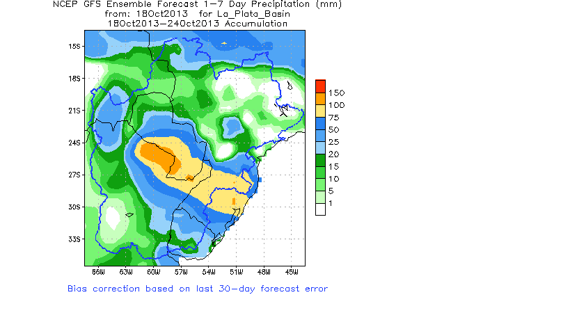 El pronóstico Hidrometeorológico del Centro Climático de referencia indica una tendencia semanal de significancia hidrológica en la cuenca de interés para la CHY con dispersión geográfica según sea la fuente consultada. (Ver grafico Nro. 1).