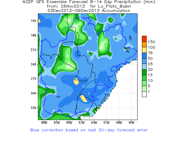 Pronóstico Hidrometeorológico para 8 días Fuente NOAA Graf. Nro.1