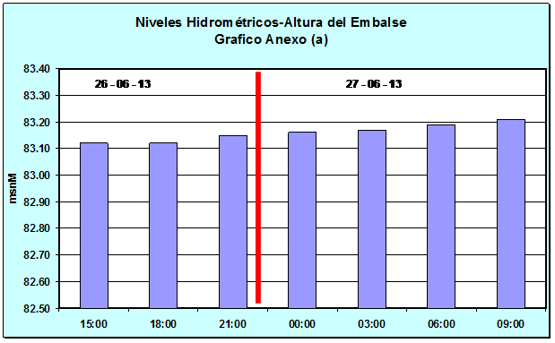 Nivel Día 26-06-13 06:00 hs, 83.17 msnM Nivel Día 27-06-13 06:00 hs, 83.19 msnM