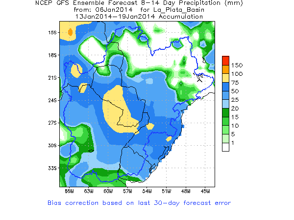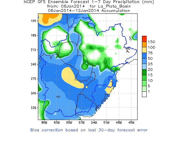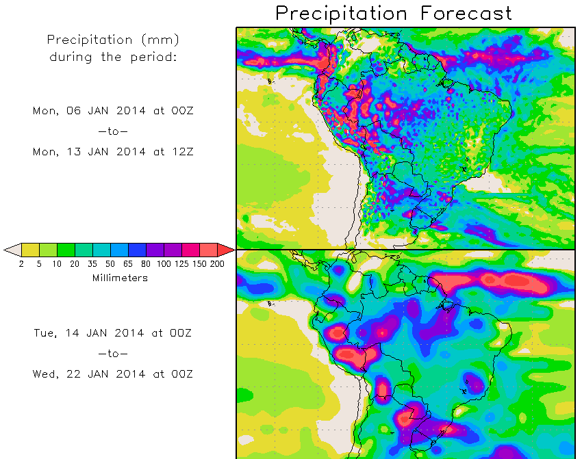 El pronóstico Hidrometeorológico del Centro Climático de referencia indica una tendencia semanal de poca significancia hidrológica en la cuenca de interés para la CHY con dispersión geográfica según sea la fuente consultada. (Ver grafico Nro. 1).