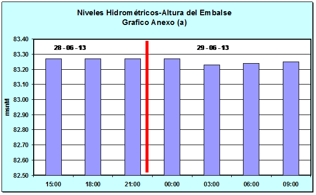 Nivel Día 28-06-13 06:00 hs, 83.27 msnM Nivel Día 29-06-13 06:00 hs, 83.24 msnM