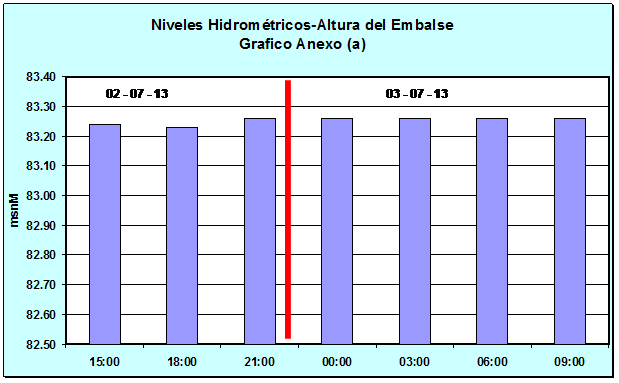 Nivel Día 02-07-13 06:00 hs, 83.21 msnM Nivel Día 03-07-13 06:00 hs, 83.26 msnM