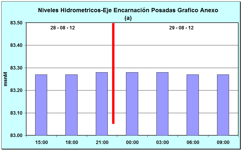Cota Día 28-08-12 03:00 hs 83.28 msnM Cota Día 29-08-12 03:00 hs 83.28 msnM