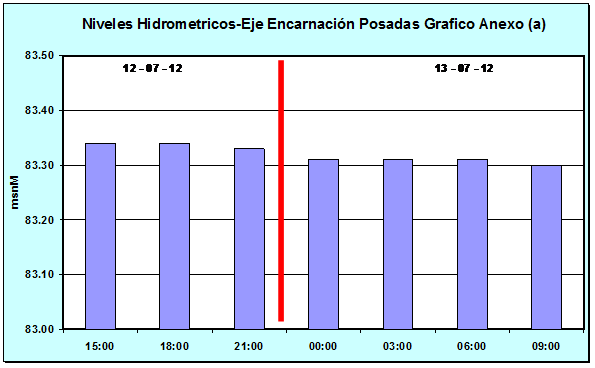 Cota Día 12-07-12 03:00hs 83.34 msnM Cota Día 13-07-12 03:00hs 83.31 msnM