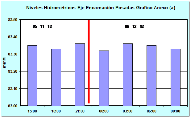 Cota Día 05-12-12 03:00 hs 83.37 msnM Cota Día 06-12-12 03:00 hs 83.32 msnM