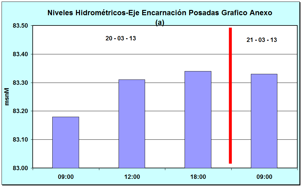 Cota Día 20-03-13 09:00 hs 83.18 msnM Cota Día 21-03-13 09:00 hs 83.33 msnM