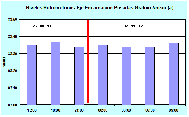 Cota Día 26 -11-12 03:00 hs 83.32 msnM Cota Día 27 -10-12 03:00 hs 83.34 msnM