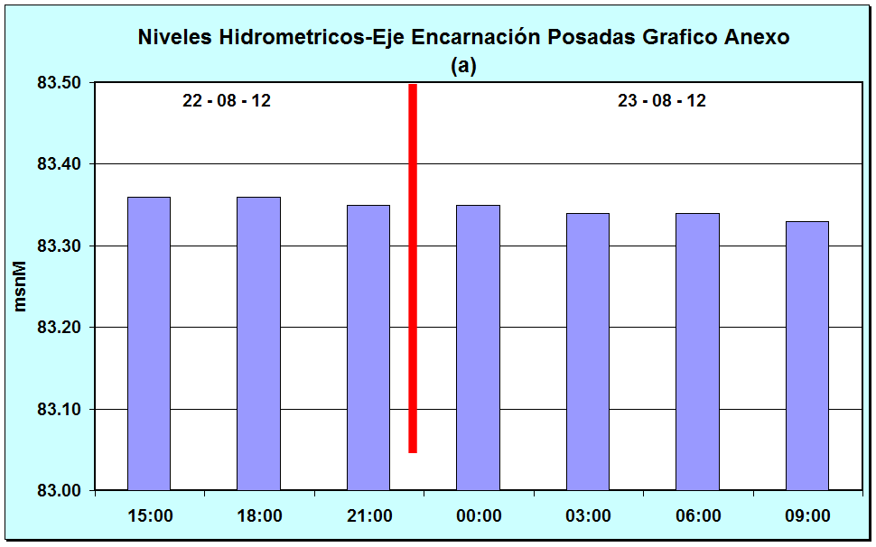 Cota Día 22-08-12 03:00 hs 83.34 msnM Cota Día 23-08-12 03:00 hs 83.34 msnM