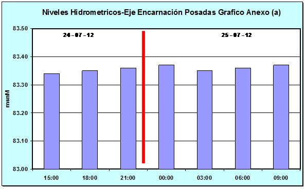 Cota Día 24-07-12 03:00 hs 83.32 msnM Cota Día 25-07-12 03:00 hs 83.35 msnM
