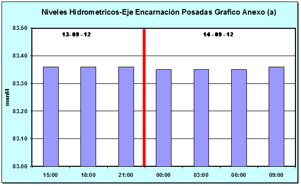 Cota Día 13-09-12 03:00 hs 83.34 msnM Cota Día 14-09-12 03:00 hs 83.35 msnM
