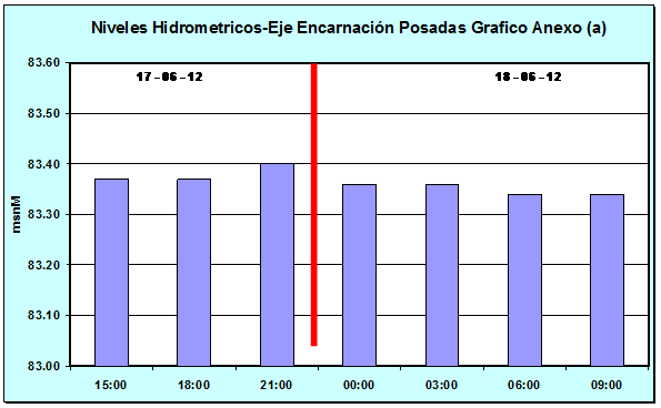 Cota Día 17-06-12 03:00hs 83.41 msnM Cota Día 18-06-12 03:00hs 83.36 msnM